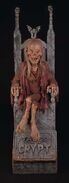 The Crypt Keeper was the primary host of Tales from the Crypt. He was introduced to the public in Crime Patrol #15, and he continued with that magazine through its changes in title and format. He was a frightening presence in those early issues, a sinister hermit sitting framed in the lightless crypt's half-open door, his face all but hidden by the double curtain of his long white hair. But he soon evolved into a more comedic horror host, delivering an irreverent and pun-filled commentary to lighten the horrific tone of the stories he introduced.