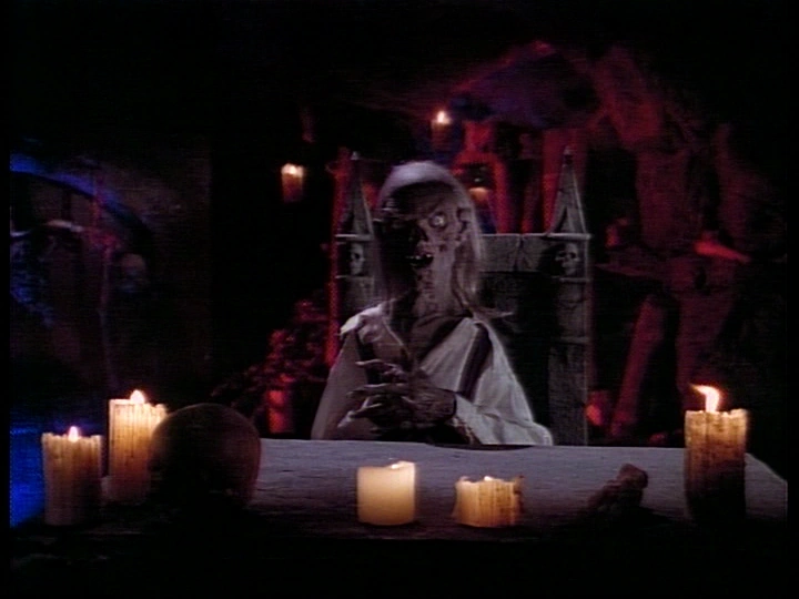 [strikes the brain with the hammer as it pans up to show the Crypt Keeper]